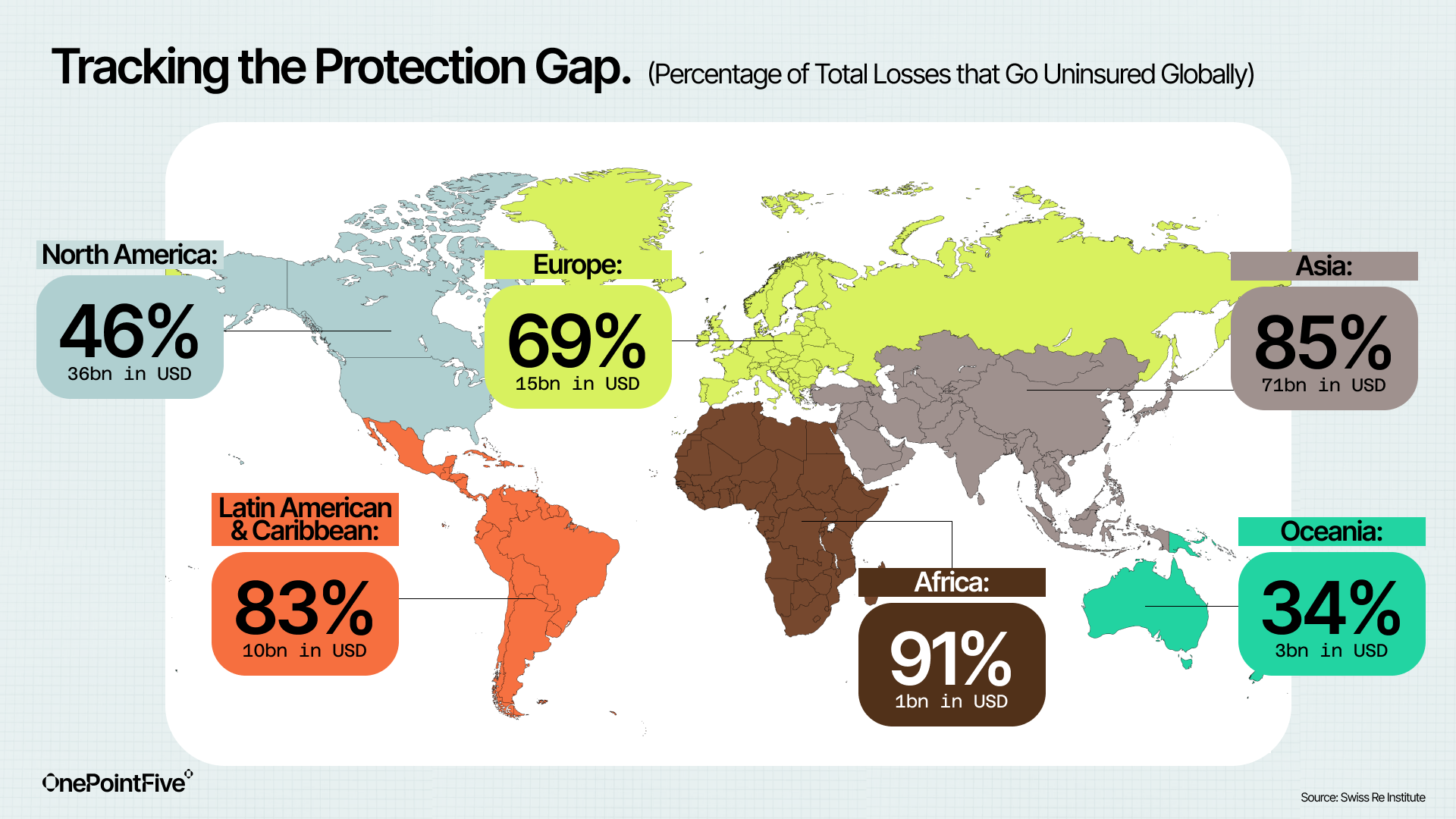 One of the most immediate and clear consequences of physical climate risk is the growing uninsurability of assets. The "protection gap", which is the share of economic losses from natural catastrophes that go uninsured, is increasing.