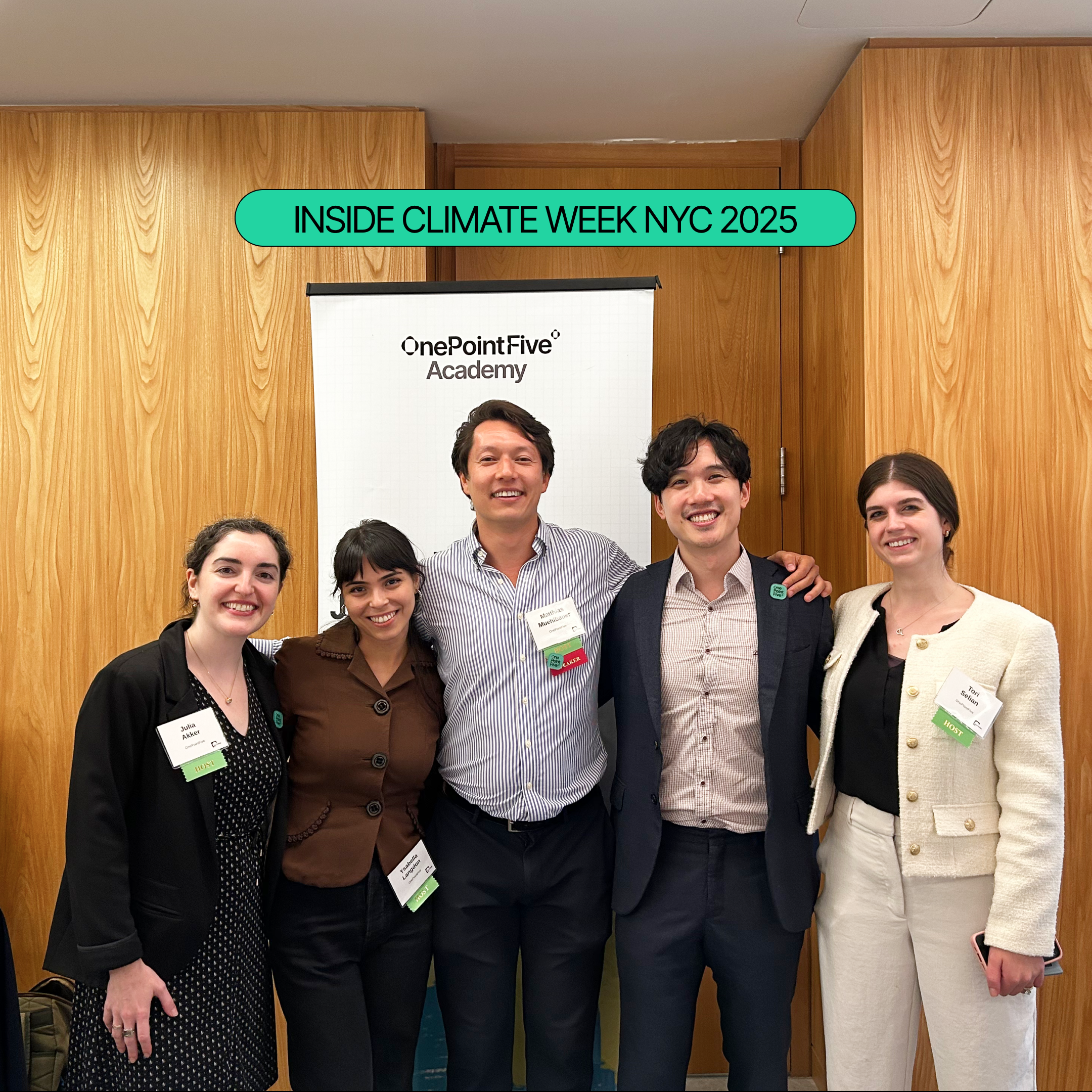For OnePointFive, it was an important moment to listen, contribute, and connect. We co-hosted a executive panel with global legal firm DLA Piper on “Beyond Compliance: Turning Legal Obligations into Competitive Edge”, where leaders from Interface, DLA Piper, and UN Global Compact Network USA shared strategies on ESG regulations and greenwashing litigation. We also welcomed our growing community at the OPF Academy Alumni Meetup, where members from different cohorts came together to reconnect, meet other fellow alumni, and exchange ideas.
