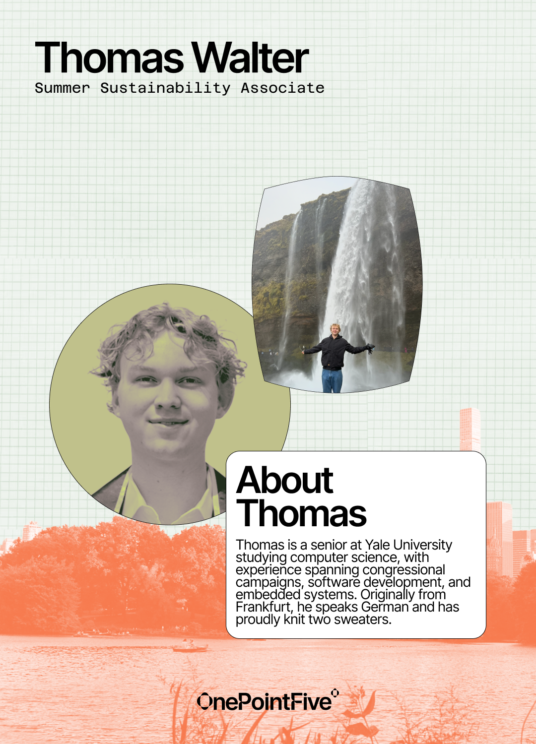 Thomas’s journey into sustainability began in high school, through the “Fridays for Future” movement. Having lived in Switzerland, USA, and Germany, he has always valued the natural beauty of the places he calls home. “My drive to work in sustainability and advocate for a healthy planet comes from wanting to protect these places.”