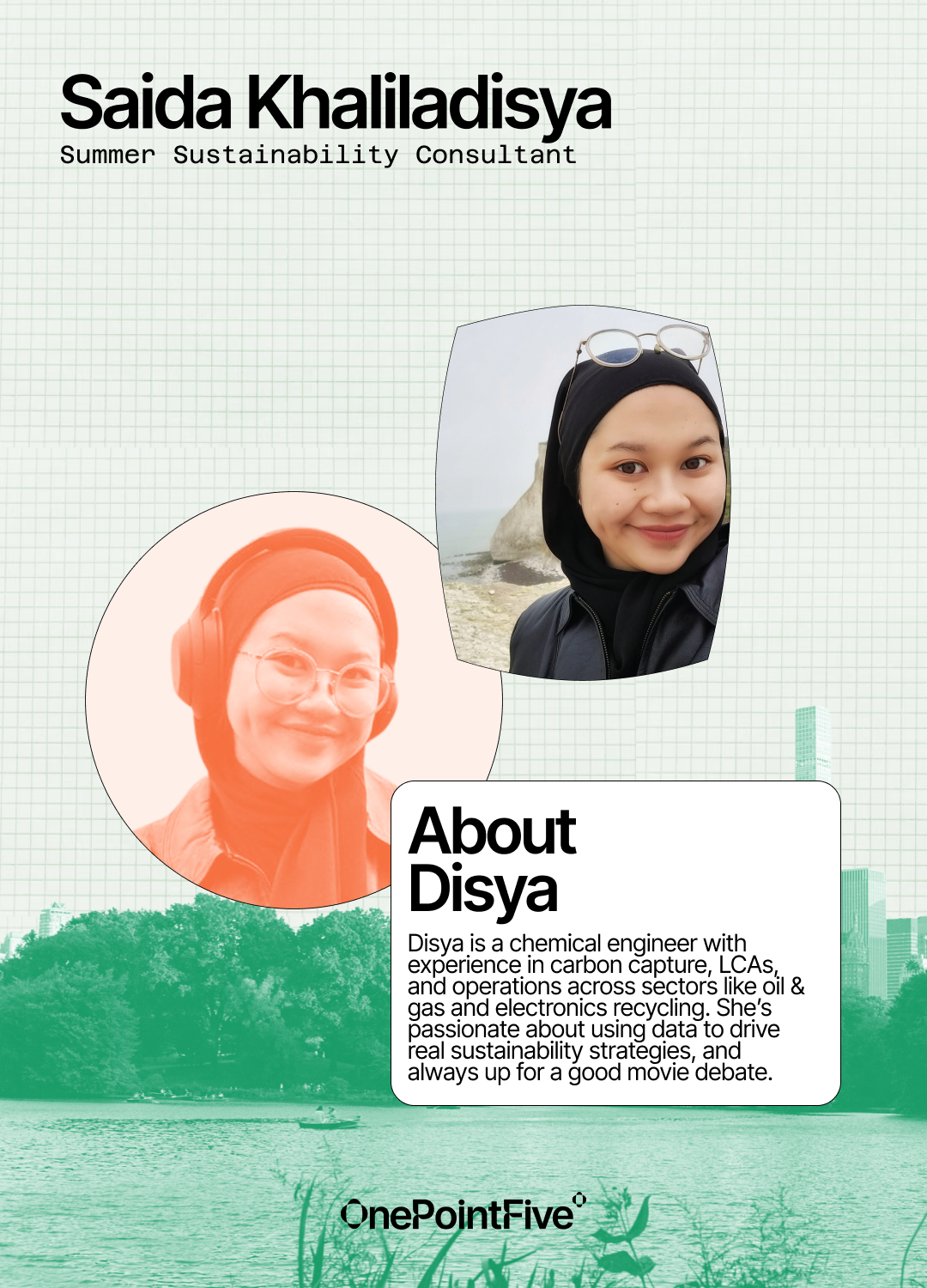 Disya first discovered OPF through a LinkedIn post about OPF Academy. While exploring the website, she came across the Summer Sustainability Consultant role, which perfectly matched her skills in Life Cycle Assessment (LCA) and GHG accounting. “So far, I’ve been proud to contribute to the kind of impactful work OnePointFive is known for, supporting climate solution implementation by bridging the sustainability talent gap.”