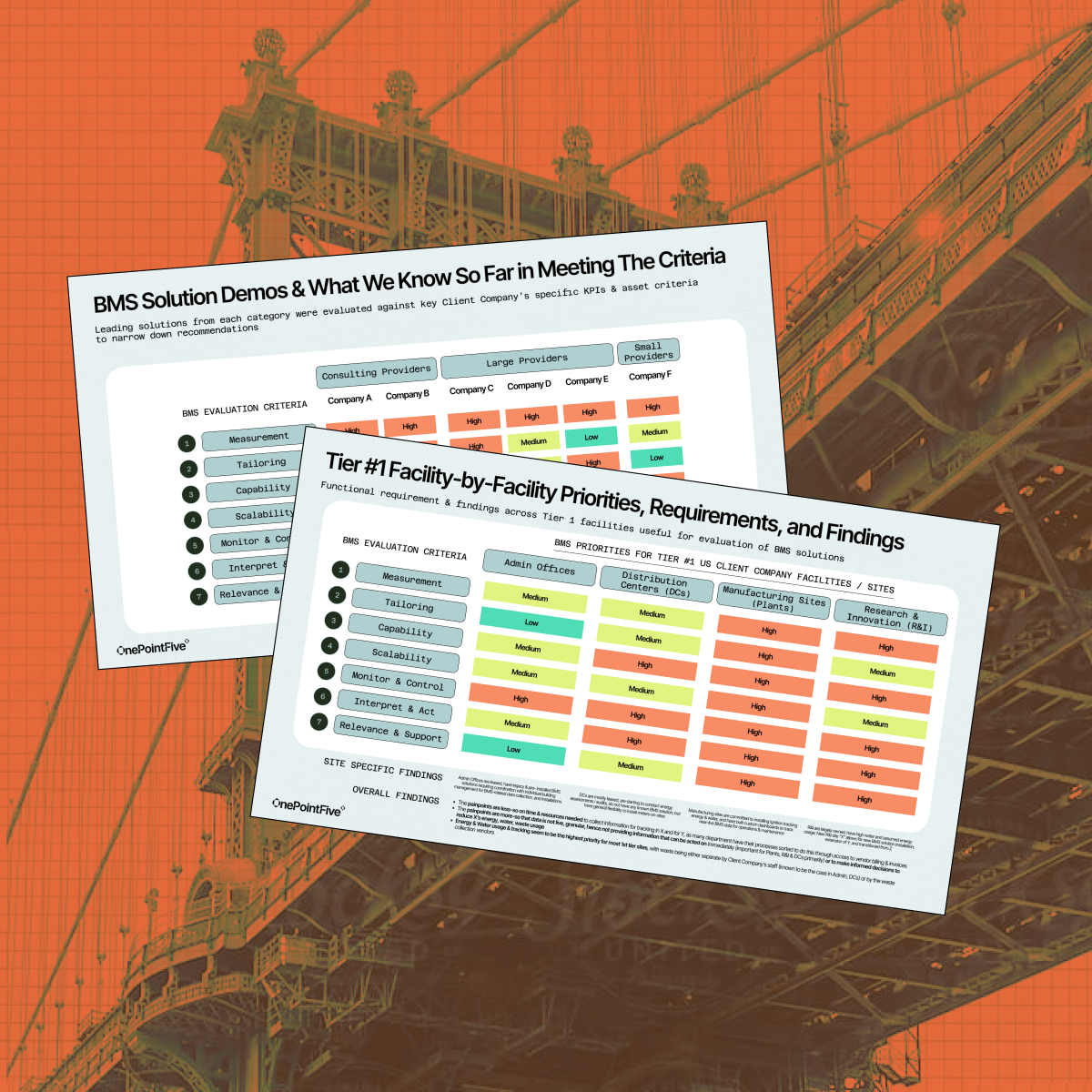 We identified 3 top BMS solutions based on 7 distinct criteria, and developed a detailed 6-month implementation plan aligned with the client's sustainability objectives and procurement timelines.