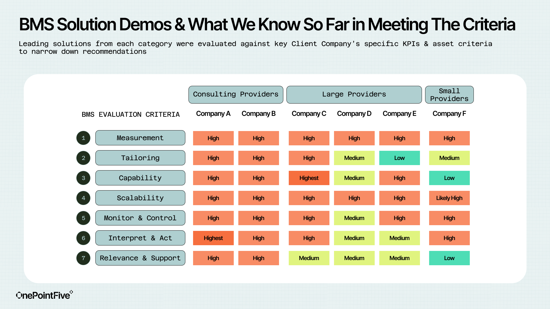 ✅ Streamlined the RFP process for the client's procurement team by providing a tailored evaluation framework.