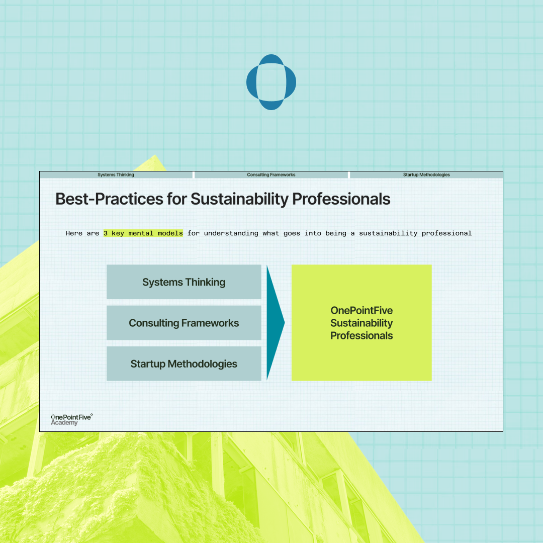 Build the consulting toolkit and systems mindset needed to thrive in the rapidly evolving climate workforce. Learn to structure sustainability challenges with proven consulting frameworks, apply systems thinking to uncover root causes, and explore the latest workforce trends shaping the future of green jobs. This module equips you with the practical skills and insights to lead impactful projects while navigating career opportunities in sustainability and beyond.